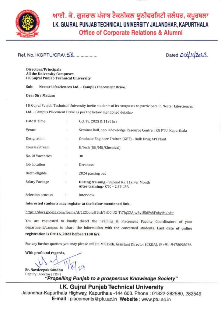 Nectar Lifesciences Ltd. – Campus Placement Drive