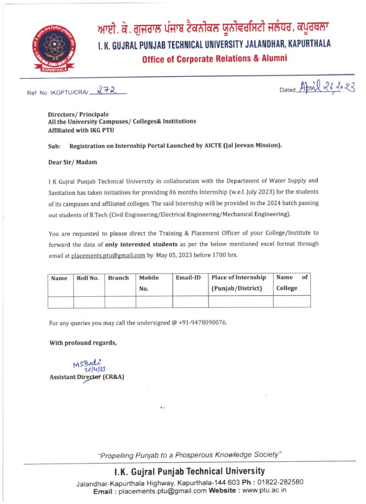 Registration on Internship Portal Launched by AICTE (Jal Jeevan Mission).